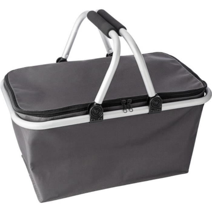 Einkaufskorb aus Polyester (600D), klappbar, mit zwei Aluminium-Tragegriffen und Reißverschluss.