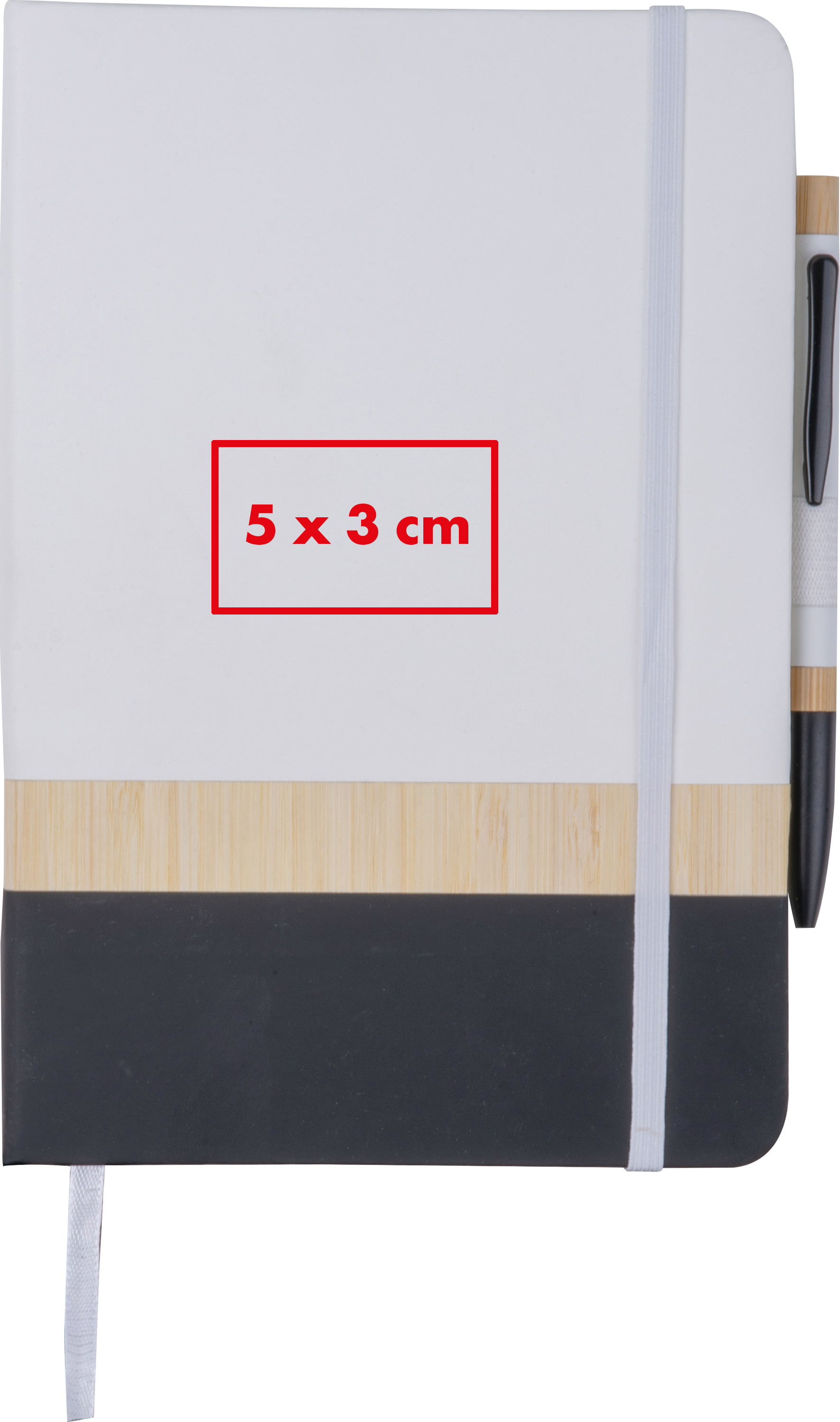 A5 Notizbuch mit Kugelschreiber. Das Notizbuch besteht aus recyceltem Papier (160 linierte Seiten), Bambus und PU. Der Kugelschreiber im passenden Design, aus Aluminium und Bambus. Perfekt für Notizen, Ideen, Skizzen und vieles mehr.Unser A5 Notizbuch mit passendem Kugelschreiber ist der perfekte Begleiter für Alltag, Büro oder unterwegs. Das Notizbuch besteht aus recyceltem Papier, Bambus und PU und bietet mit 160 linierten Seiten viel Platz für Notizen, Ideen und Skizzen. Der Kugelschreiber im passenden Design kombiniert Aluminium und Bambus für ein hochwertiges Schreibgefühl. Ein Set, das Nachhaltigkeit und Stil optimal verbindet. Produkthighlights: 160 linierte Seiten: Viel Raum für Notizen, Skizzen und kreative Einfälle. Nachhaltige Materialien: Notizbuch aus recyceltem Papier, Bambus und PU. Passender Kugelschreiber: Aus Aluminium und Bambus – liegt angenehm in der Hand. Praktisches Format: Kompakt und ideal für unterwegs. Werbeanbringung: Ihre Werbung drucken wir gut sichtbar auf das Notizbuch – so bleibt Ihre Marke bei jedem Gedanken präsent.