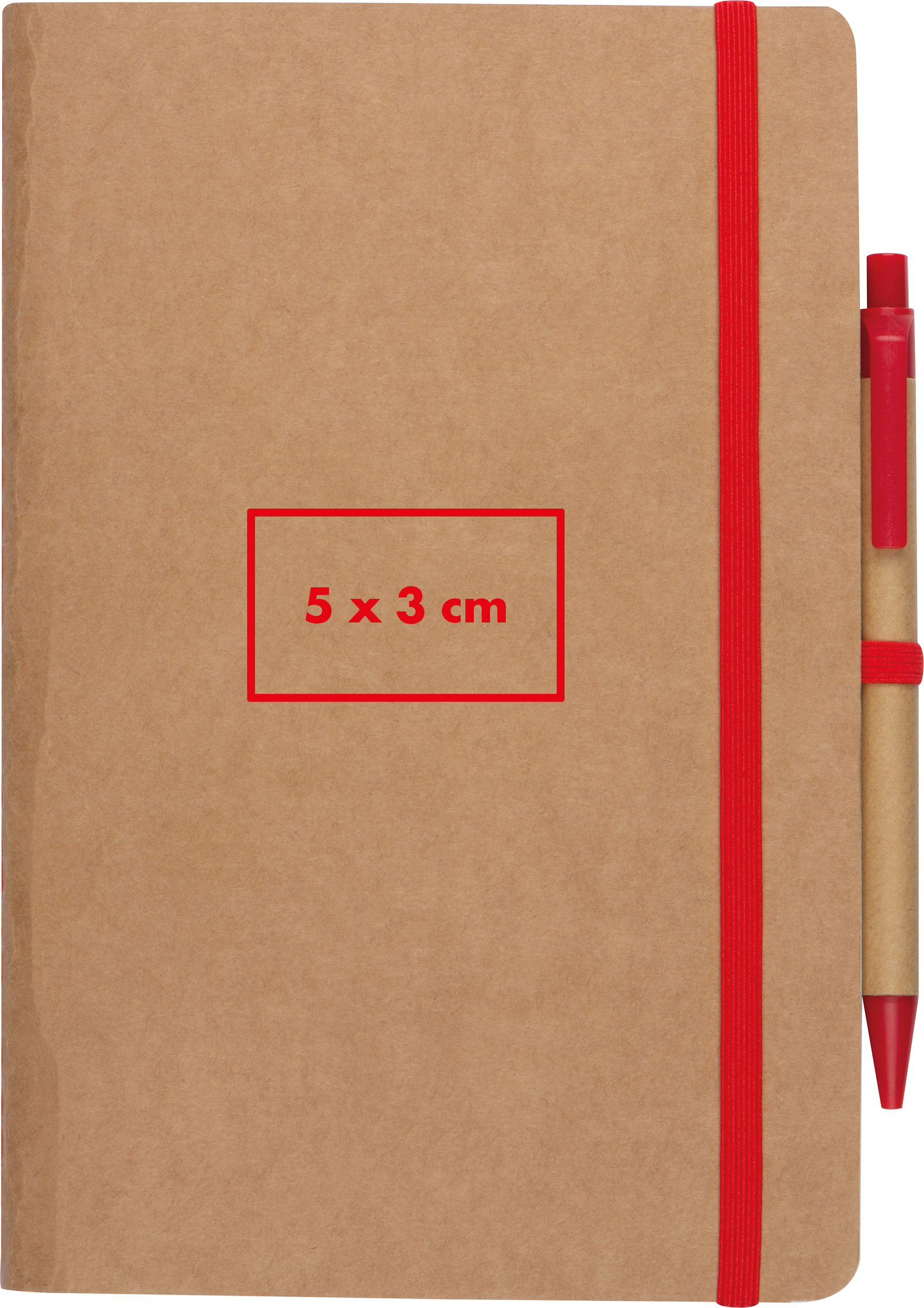 A5 Notizbuch aus recyceltem Papier mit 120 Seiten, Gummiband zum Verschließen und Kugelschreiberschlaufe inkl. Kugelschreiber mit blau schreibender Mine.Unser A5 Notizbuch aus recyceltem Papier kombiniert praktische Funktionen mit modernem Design. Mit Ihrem individuell gestalteten Logo auf dem Cover wird es zu einem idealen Werbegeschenk. Produkthighlights: Recyceltes Papier: Das Notizbuch besteht aus hochwertigem recyceltem Papier und bietet 160 linierte Seiten für Ihre Notizen, Gedanken und Ideen. Gummibandverschluss: Das praktische Gummiband schützt Ihre Aufzeichnungen und hält das Notizbuch sicher verschlossen. Kugelschreiberschlaufe: Eine integrierte Schlaufe an der Seite sorgt dafür, dass der mitgelieferte Kugelschreiber mit blau schreibender Mine stets griffbereit ist. Werbeanbringung: Ihr Logo wird prominent auf dem Cover gedruckt und sorgt so für eine professionelle und sichtbare Präsentation Ihrer Marke.