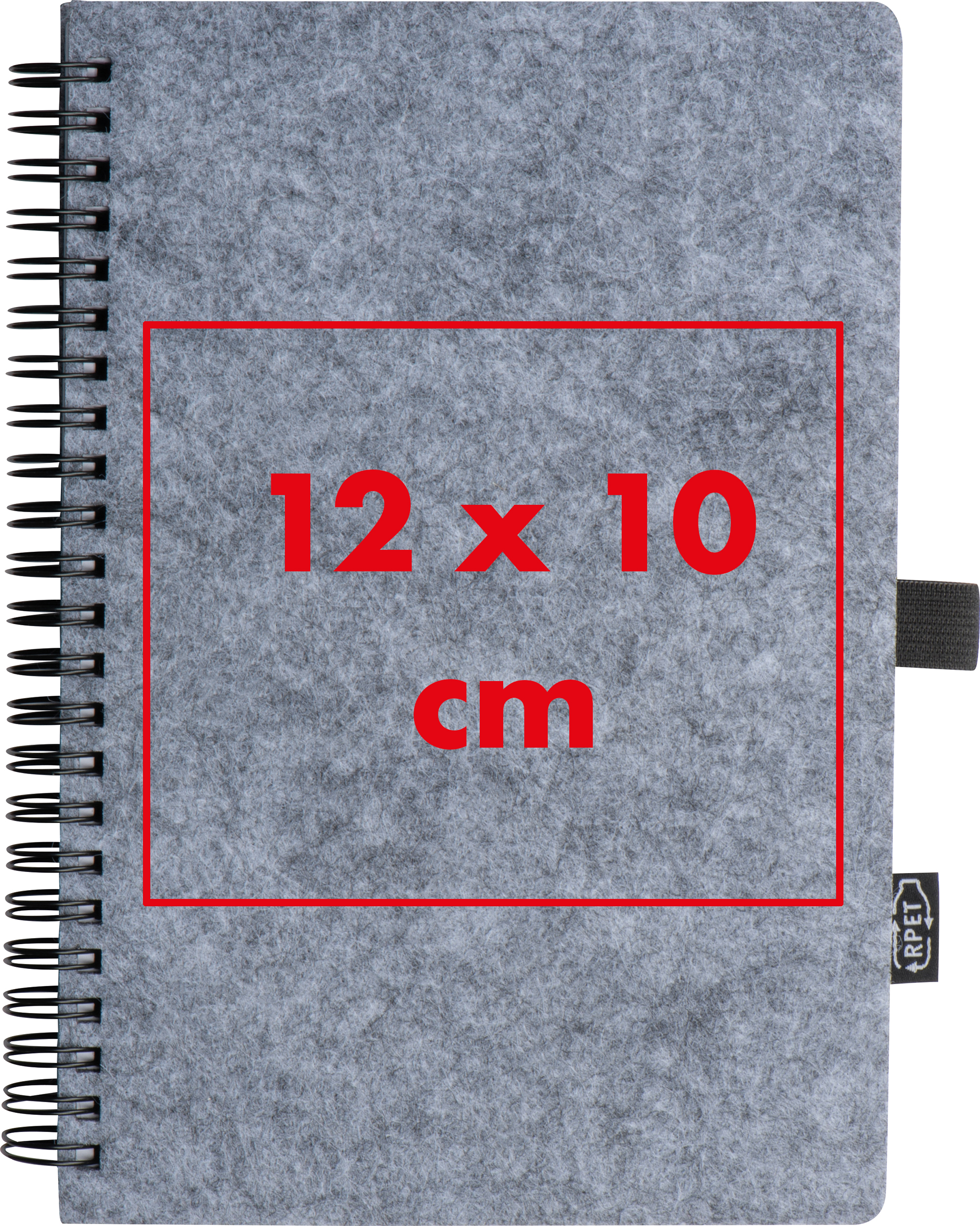 Notizbuch aus RPET Filz und 160 linierten Seiten aus Recyclingpapier mit Spiralbindung und Kugelschreiberschlaufe.Unser Notizbuch aus RPET Filz ist eine stilvolle und funktionale Wahl, die sich perfekt als individuelles Werbegeschenk eignet. Mit Ihrem Logo auf dem Cover wird es zu einem praktischen Begleiter für den Alltag. Produkthighlights: Modernes Material: Das Notizbuch besteht aus RPET Filz, der durch seine ansprechende Haptik und Optik überzeugt. 160 Seiten: Ausreichend Platz für Notizen, Gedanken und Skizzen, auf hochwertigem Papier. Praktische Spiralbindung: Ermöglicht ein einfaches Umblättern und komfortables Schreiben. Kugelschreiberschlaufe: Integrierte Schlaufe zum Verstauen eines Kugelschreibers, sodass Sie immer bestens ausgestattet sind. Werbeanbringung: Ihr Logo wird auf das Cover gedruckt, um eine professionelle und personalisierte Präsentation Ihrer Marke zu gewährleisten.