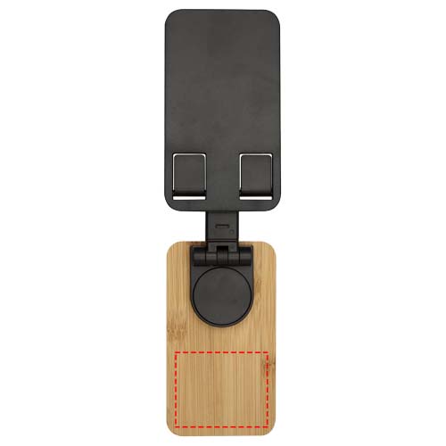 Alfirk Klappbare Smartphonehalterung aus recyceltem Kunststoff mit Bambusdetails als Werbeartikel oder Werbemittel