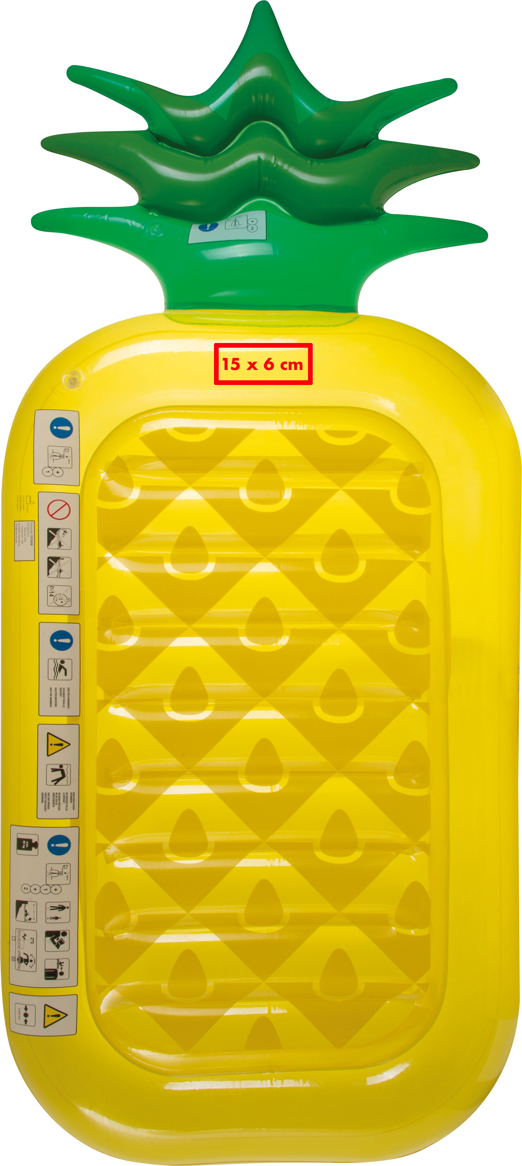 Aufblasbare Luftmatratze in Form einer Ananas.Unsere aufblasbare Luftmatratze in Form einer Ananas bringt tropisches Flair an jeden Pool oder Strand. Mit ihrem detailreichen Design und der großzügigen Liegefläche ist sie ein echter Hingucker und lädt zum Entspannen ein. Ihre Werbung wird an einer gut sichtbaren Stelle gedruckt, wodurch Ihre Marke bei jedem Einsatz prominent präsentiert wird. Produkthighlights: Tropisches Design: Auffällige Ananas-Form für sommerliche Vibes. Große Liegefläche: Komfortabel und stabil für entspanntes Relaxen. Strapazierfähiges Material: Langlebig und ideal für den Einsatz im Wasser. Leicht zu transportieren: Einfach aufzublasen und wieder zu verstauen. Werbeanbringung: Ihre Werbung wird gut sichtbar auf einer Stelle der Luftmatratze gedruckt, für eine wirkungsvolle Markenpräsentation.