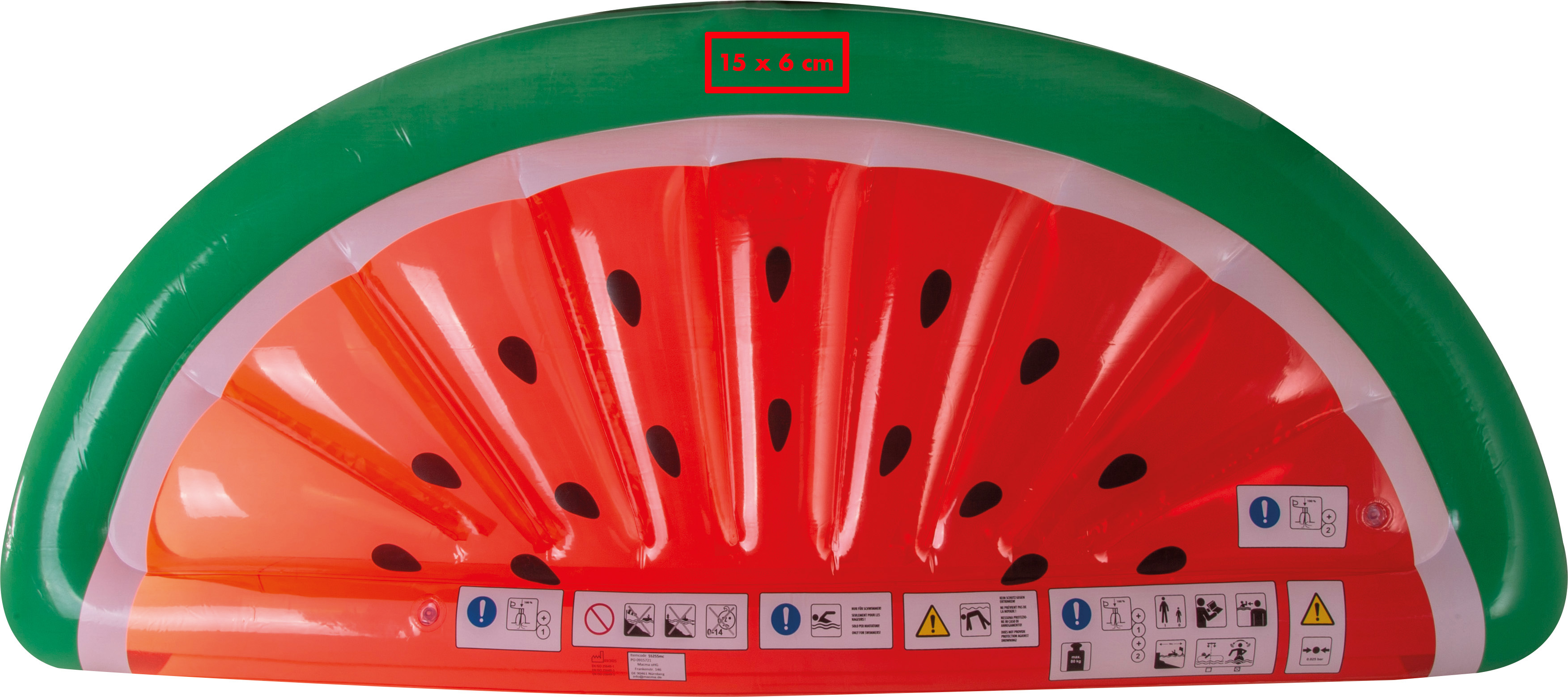 Aufblasbare Lutmatratze in Form einer Wassermelone.Unsere aufblasbare Luftmatratze in Form einer Wassermelone ist der perfekte Begleiter für entspannte Stunden am Pool oder am Strand. Mit ihrem farbenfrohen und sommerlichen Design zieht sie alle Blicke auf sich. Die großzügige Liegefläche bietet Komfort, während Ihre Werbung auf einer gut sichtbaren Stelle angebracht wird, um Ihre Marke stilvoll und auffällig zu präsentieren. Produkthighlights: Sommerliches Design: In Form einer Wassermelone, fröhlich und einladend. Große Liegefläche: Bietet Komfort für stundenlanges Relaxen. Robustes Material: Strapazierfähig und langlebig für den Einsatz im Wasser. Leicht transportierbar: Einfach aufzublasen und zu verstauen. Werbeanbringung: Ihre Werbung wird an einer gut sichtbaren Stelle gedruckt und setzt Ihre Marke in Szene.