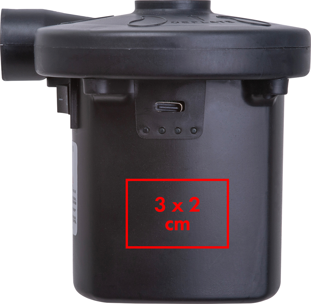 Elektrische Luftpumpe mit wiederaufladbarem Akku (2.000 mAH) und drei Ventilaufsätzen zum Aufpumpen von Strandbällen, Lutftmatratzen etc. Inkl. USB-C Ladekabel.Unsere elektrische Luftpumpe mit wiederaufladbarem Akku ist der praktische Helfer für unterwegs, zu Hause oder auf Reisen. Dank des leistungsstarken 2.000-mAh-Akkus pumpt sie Strandbälle, Luftmatratzen und andere aufblasbare Artikel schnell und mühelos auf – ganz ohne manuelles Pumpen. Die kompakte Bauweise macht sie besonders handlich und leicht zu transportieren. Über das mitgelieferte USB-C-Ladekabel lässt sich die Pumpe bequem und flexibel aufladen. Produkthighlights: Leistungsstarker Akku: Der integrierte, wiederaufladbare 2.000-mAh-Akku sorgt für zuverlässige Leistung und kabellose Nutzung. Vielseitig einsetzbar: Drei verschiedene Ventilaufsätze ermöglichen das Aufpumpen von Strandbällen, Luftmatratzen, Schwimmringen und vielen weiteren aufblasbaren Produkten. Einfache Aufladung: Inklusive USB-C-Ladekabel für schnelles und komfortables Laden. Kompakt & mobil: Die handliche Größe macht die Luftpumpe zum idealen Begleiter für Strand, Camping oder Freizeit. Werbeanbringung: Ihr Logo drucken wir seitlich auf das Gehäuse der Pumpe – perfekt als individuelles Werbemittel oder praktisches Giveaway.