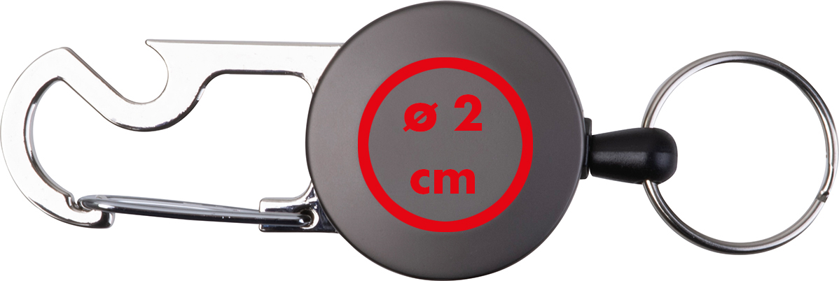 Ausziehbarer Schlüsselanhänger aus Metall mit transparentem Kartenhalter und Karabinerhaken mit Flaschenöffner. Der Schlüsselring lässt sich mit JoJo-Effekt auf bis zu 55cm ausziehen.Unser ausziehbarer Schlüsselanhänger aus Metall mit transparentem Kartenhalter ist die praktische Lösung für Ausweise, Schlüsselkarten oder Schlüssel im Arbeitsalltag. Dank des integrierten JoJo-Mechanismus lässt sich der Schlüsselring bequem auf bis zu 55 cm ausziehen – ideal für schnellen Zugriff ohne Abnehmen. Der Karabinerhaken mit integriertem Flaschenöffner sorgt für zusätzliche Funktionalität und macht den Schlüsselanhänger besonders vielseitig. Produkthighlights: Robustes Metallgehäuse: Langlebig und hochwertig verarbeitet. Ausziehbarer JoJo-Mechanismus: Schlüsselring bis zu 55 cm ausziehbar für komfortable Nutzung. Transparenter Kartenhalter: Ideal für Ausweise, Zutrittskarten oder ID-Karten. Karabiner mit Flaschenöffner: Praktische Zusatzfunktion für unterwegs. Vielseitig einsetzbar: Perfekt für Beruf, Events, Messen oder Alltag. Werbeanbringung: Ihre Werbung gravieren wir hochwertig auf das runde Metallstück – ideal als funktionales Werbegeschenk oder praktisches Giveaway.