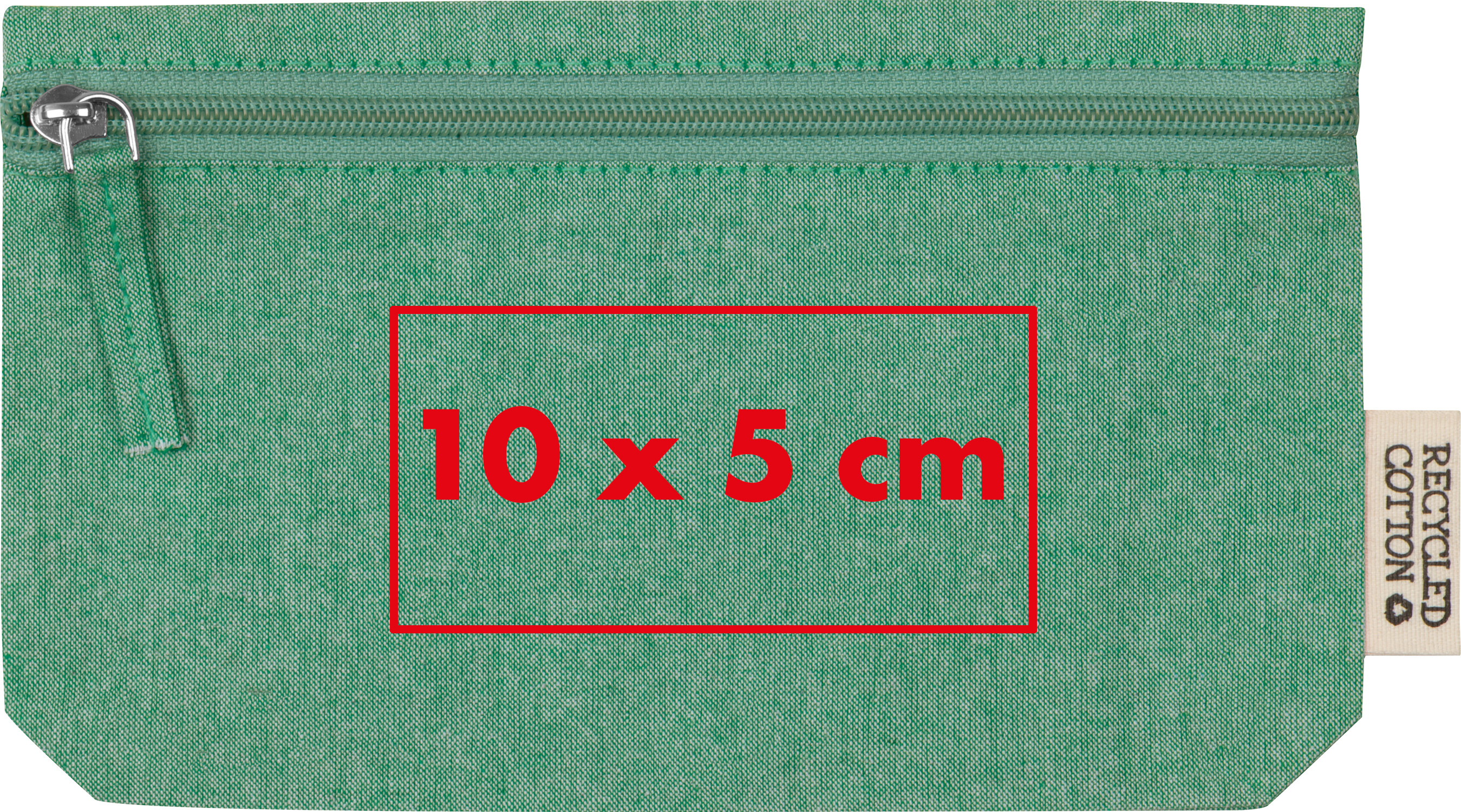 Baumwolltäschchen aus recycelter Baumwolle (180 gsm) mit Reißverschluss zum Aufbewahren von Stiften, Kosmetikartikeln und vielem mehr. Oeko-Tex® STANDARD 100.Unser Täschchen aus recycelter Baumwolle (180 g/m²) ist die ideale Aufbewahrungslösung für Stifte, Kosmetikartikel oder kleine Utensilien. Hergestellt aus Oeko-Tex® STANDARD 100 zertifizierter Baumwolle, kombiniert es Funktionalität und ansprechendes Design. Der praktische Reißverschluss sorgt für sicheren Verschluss, während das robuste Material für eine langlebige Nutzung ausgelegt ist. Ihre Werbung wird direkt unterhalb des Reißverschlusses gedruckt und sorgt für eine stilvolle Markenpräsentation. Produkthighlights: Recycelte Baumwolle (180 g/m²): Strapazierfähig und vielseitig einsetzbar, aus ressourcenschonenden Materialien gefertigt. Oeko-Tex® STANDARD 100 zertifiziert: Garantiert schadstoffgeprüfte Materialien, ideal für Hautkontakt. Praktischer Reißverschluss: Sicherer Verschluss für einfache und zuverlässige Aufbewahrung. Kompakte Größe: Leicht mitzunehmen, ideal für den Alltag, Reisen oder Büro. Werbeanbringung: Ihre Werbung wird direkt unterhalb des Reißverschlusses gedruckt und macht das Täschchen zu einem effektiven Werbeträger.