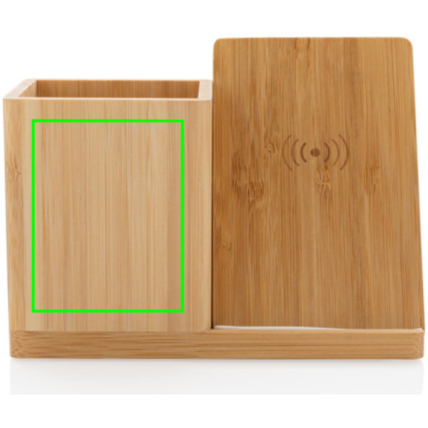 Calgary kabelloses 10W-Ladegerät aus BambusKabelloses 10W-Schnellladegerät mit Stifthalter aus RCS (Recycled Claim Standard)-zertifiziert recyceltem ABS. Gesamter Recyclinganteil: 6% basierend auf dem Gesamtgewicht des Artikels (einschließlich Bambussockel) Die Bambusaußenseite des Organizers ist vollständig aus FSC 100-Bambus gefertigt. Inklusive 120cm Type-C Ladekabel aus RCS-zertifiziertem Recycling-TPE. Verpackt in FSC-Mix-Kraftkarton. Type-C Input: 5V/2A; 9 V/1,67 A. Wirless Output: 5V/1A;9V/1,1A (10W) Registered design®
