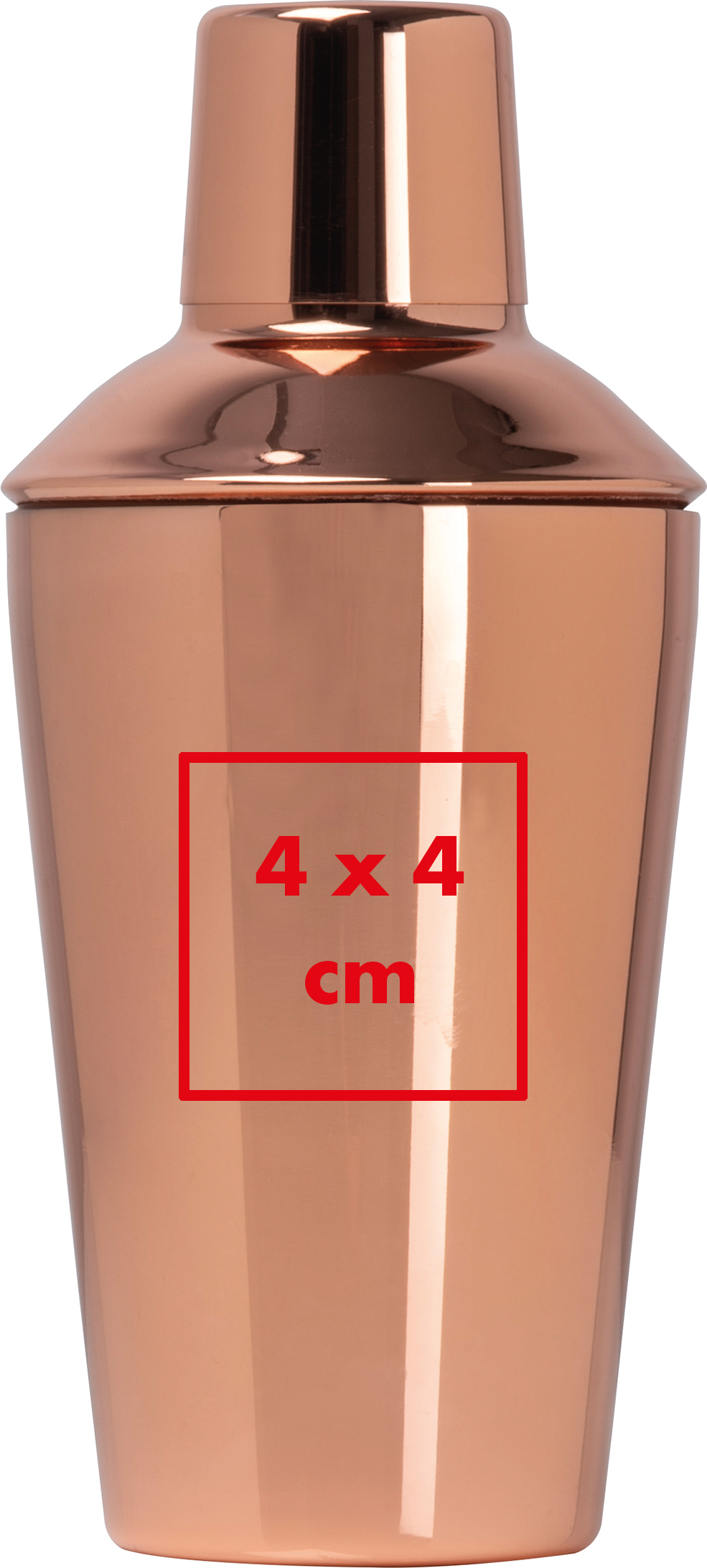 Edler CrisMa Cocktailshaker (500ml Fassungsvermögen) in handlichem Design aus rostfreiem Edelstahl und Kupferbeschichtung. Perfekt für ihren nächsten Cocktailabend.Unser edler CrisMa Cocktailshaker vereint elegantes Design und hochwertige Verarbeitung für professionelle Cocktailmomente. Mit einem Fassungsvermögen von 500 ml und einer stilvollen Kupferbeschichtung ist der Shaker ein echter Hingucker, der sich perfekt für Ihre nächsten Cocktailabende eignet. Gefertigt aus rostfreiem Edelstahl, ist er langlebig und leicht zu reinigen. Ihre Werbung wird im oberen Drittel präzise graviert und verleiht dem Shaker eine persönliche und exklusive Note. Produkthighlights: Rostfreier Edelstahl: Langlebig, geschmacksneutral und leicht zu reinigen. Kupferbeschichtung: Verleiht dem Shaker eine luxuriöse und auffällige Optik. 500 ml Fassungsvermögen: Ideal für die Zubereitung verschiedenster Cocktails. Handliches Design: Ergonomisch und angenehm in der Handhabung. Werbeanbringung: Ihre Werbung wird im oberen Drittel graviert und sorgt für eine elegante und professionelle Präsentation Ihrer Marke.