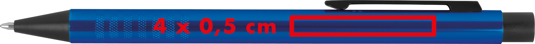 Druckkugelschreiber aus Metall mit blau schreibender Mine und extravaganter Griffzone.Unser hochwertiger Druckkugelschreiber aus Metall bietet nicht nur ein erstklassiges Schreiberlebnis, sondern auch ein extravagantes Design, das Ihre Marke stilvoll repräsentiert. Mit einer blau schreibenden Mine und einer Lasergravur Ihrer Werbung rechts vom Clip ist dieser Kugelschreiber ein elegantes Werbemittel. Produkthighlights: Hochwertiges Metallgehäuse: Der Kugelschreiber verfügt über ein robustes Metallgehäuse, das Langlebigkeit und Eleganz gewährleistet. Blauschreibende Mine: Die blaue Mine bietet ein geschmeidiges Schreiberlebnis und ermöglicht eine klare, scharfe Schrift. Extravagante Griffzone: Die Gestaltung der Griffzone des Kugelschreibers verleiht ihm eine extravagante Note und macht ihn zu einem Blickfang. Werbeanbringung: Ihre Werbung wird rechts vom Clip des Kugelschreibers per Lasergravur angebracht, was eine dauerhafte und stilvolle Präsentation Ihrer Marke gewährleistet.