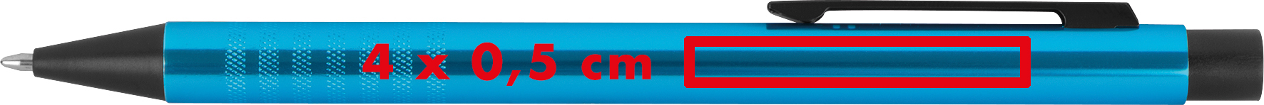 Druckkugelschreiber aus Metall mit blau schreibender Mine und extravaganter Griffzone.Unser hochwertiger Druckkugelschreiber aus Metall bietet nicht nur ein erstklassiges Schreiberlebnis, sondern auch ein extravagantes Design, das Ihre Marke stilvoll repräsentiert. Mit einer blau schreibenden Mine und einer Lasergravur Ihrer Werbung rechts vom Clip ist dieser Kugelschreiber ein elegantes Werbemittel. Produkthighlights: Hochwertiges Metallgehäuse: Der Kugelschreiber verfügt über ein robustes Metallgehäuse, das Langlebigkeit und Eleganz gewährleistet. Blauschreibende Mine: Die blaue Mine bietet ein geschmeidiges Schreiberlebnis und ermöglicht eine klare, scharfe Schrift. Extravagante Griffzone: Die Gestaltung der Griffzone des Kugelschreibers verleiht ihm eine extravagante Note und macht ihn zu einem Blickfang. Werbeanbringung: Ihre Werbung wird rechts vom Clip des Kugelschreibers per Lasergravur angebracht, was eine dauerhafte und stilvolle Präsentation Ihrer Marke gewährleistet.