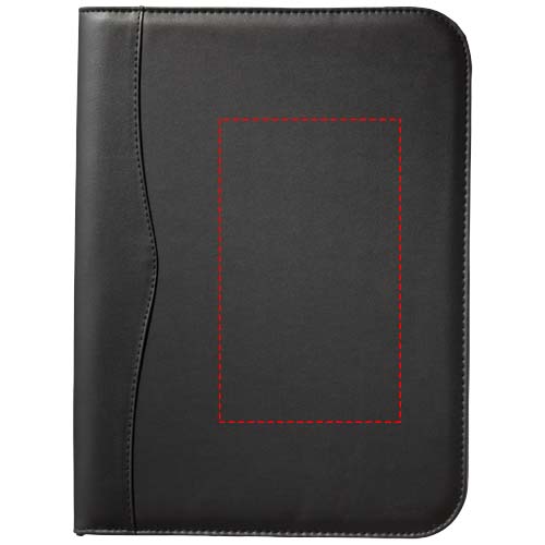 Ebony A4 ReißverschlussmappeDer perfekte Gegenstand, mit dem jeder Mitarbeiter indirekt zur Steigerung des Bekanntheitsgrades jeder Marke beiträgt: die Ebony-Mappe. Die Mappe im A4-Format verfügt über ein praktisches Fach und eine Reißverschlusstasche zur Aufbewahrung von Dokumenten. Darüber hinaus verfügt sie über einen 20-seitigen, gefütterten Notizblock und eine Stiftschlaufe (Stift und Zubehör nicht im Lieferumfang enthalten). Schließen Sie die Mappe mit dem Reißverschluss, um den Inhalt ordentlich und gut geschützt aufzubewahren. Die Mappe ist aus strapazierfähigem Lederimitat gefertigt und bietet viel Platz für große Logos.