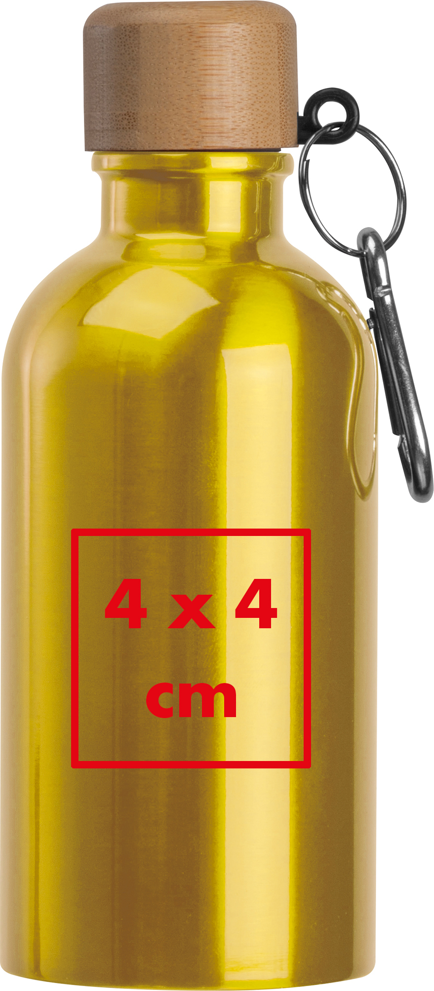 Kleine Edelstahltrinkflasche mit praktischem Karabiner, einem Füllvermögen von 400ml und einem auslaufsicheren Drehverschluss mit Bambusdeckel.Unsere kleine Edelstahltrinkflasche mit Karabiner ist eine kompakte und praktische Lösung für unterwegs. Mit einem Fassungsvermögen von 400 ml ist sie ideal für kürzere Ausflüge oder den täglichen Gebrauch. Der auslaufsichere Drehverschluss mit Bambusdeckel verleiht der Flasche eine natürliche und stilvolle Optik, während der praktische Karabiner eine einfache Befestigung an Taschen oder Rucksäcken ermöglicht. Ihre Werbung wird präzise auf die Flasche graviert und sorgt für eine elegante und dauerhafte Markenpräsentation. Produkthighlights: Kompaktes Design: Perfekte Größe für kürzere Aktivitäten oder den Alltag. Hochwertiger Edelstahl: Langlebig, geschmacksneutral und leicht zu reinigen. 400 ml Fassungsvermögen: Ideal für kleine Erfrischungen unterwegs. Auslaufsicherer Drehverschluss: Sicherer Transport ohne Kleckern. Bambusdeckel mit Karabiner: Stilvoll und praktisch für einfaches Befestigen. Werbeanbringung: Ihre Werbung wird hochwertig auf die Flasche graviert, für eine dezente und professionelle Präsentation Ihrer Marke.