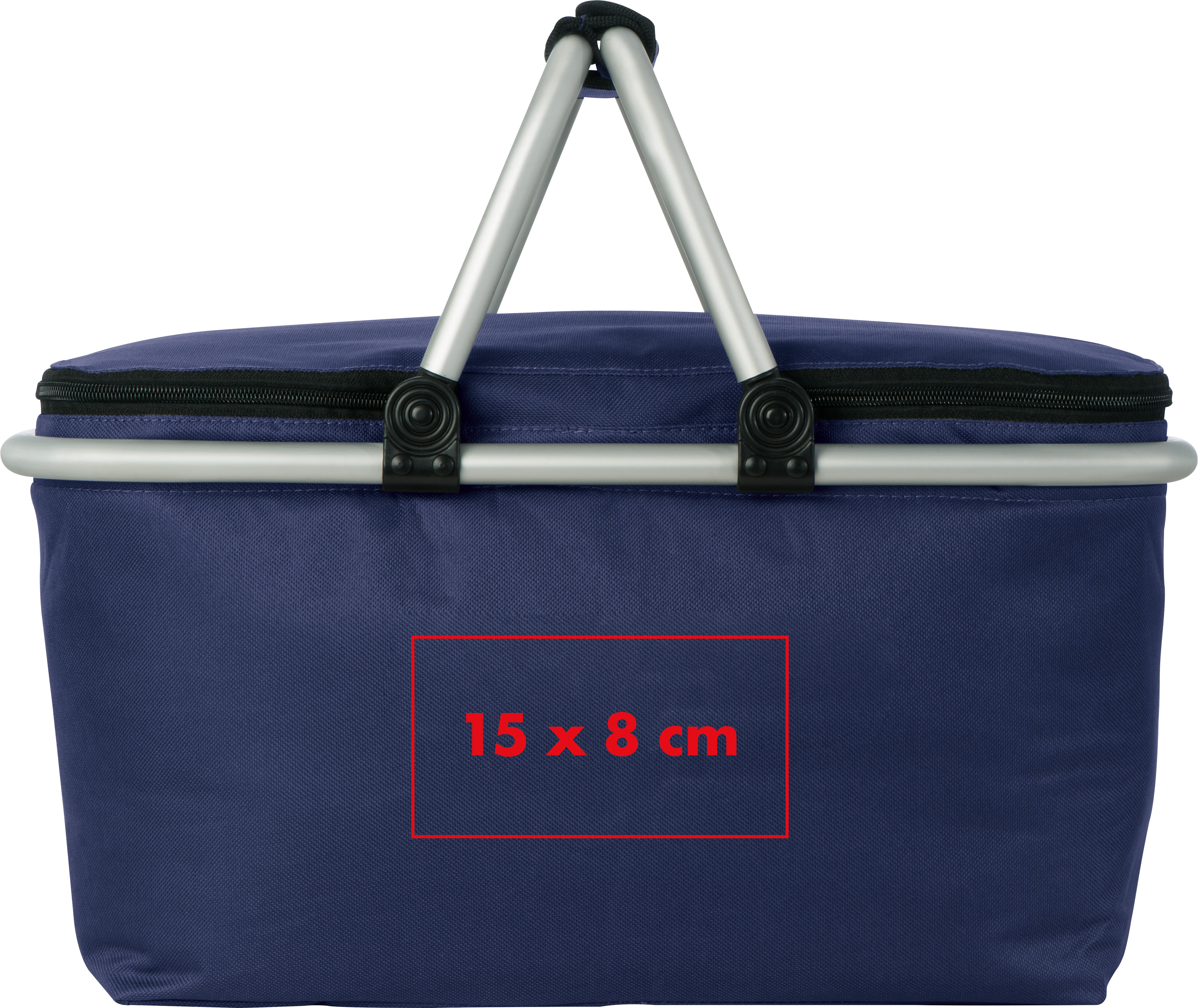 Faltbarer Einkaufskorb aus Polyester mit Isolierfunktion und Aluminiumgestänge. Ein nützlicher Begleiter, der sich zusammengefaltet platzsparend lagernd lässt.Unser faltbarer Einkaufskorb mit Isolierfunktion ist die ideale Lösung für Kunden, die Lebensmittel oder andere Artikel effizient und kühl transportieren möchten. Produkt Highlights: Hochwertige Materialien: Der Einkaufskorb besteht aus strapazierfähigem Polyester, einem Aluminiumgestänge und einer Isolierschicht, die Ihre Lebensmittel kühl hält. Faltbares Design: Der Korb lässt sich einfach zusammenfalten, wodurch er platzsparend zu verstauen ist und sich ideal für Reisen oder den täglichen Gebrauch eignet. Praktische Tragegriffe: Die bequemen Tragegriffe erleichtern das Tragen, auch bei vollem Korb. Isolierfunktion: Die Isolierschicht sorgt dafür, dass Ihre Lebensmittel während des Einkaufs frisch bleiben – perfekt für den Transport von Kühlwaren oder für Picknicks. Großes Fassungsvermögen: Der Korb bietet ausreichend Platz für Ihre Einkäufe oder für den Transport größerer Artikel. Werbeanbringung: Ihr Logo wird auf den Deckel des Korbs gedruckt, sodass es bei jedem Gebrauch gut sichtbar ist.