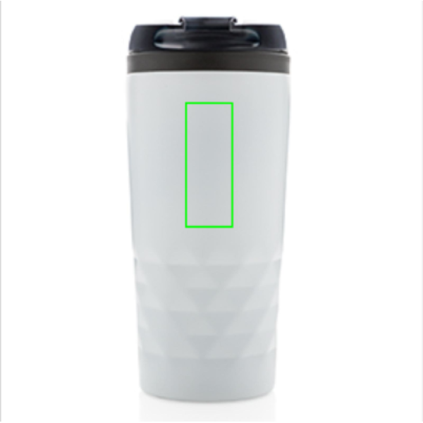 Geometrischer BecherModischer Stainless-Steel Becher mit geometrischen Details. Innen aus PP. Nur Handwäsche. Inhalt: 300ml. Nur Handwäsche.