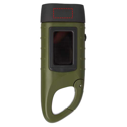 Helios Solar-Dynamo-Taschenlampe aus recyceltem Kunststoff mit Karabinerhaken, armeegrün