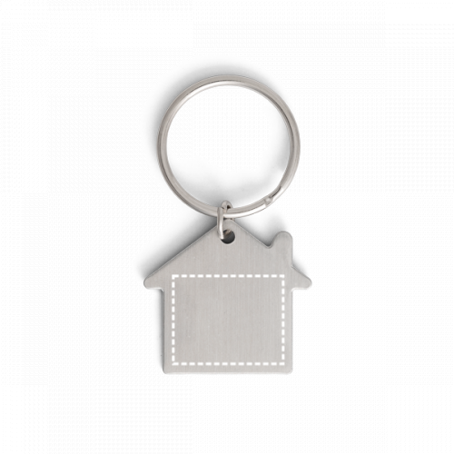 Schlüsselanhänger aus Aluminium (Form: Haus). Ring: ø 32 mm | Produkt: 35 x 38 x 2 mm | Verbinder: ø 10 mm |