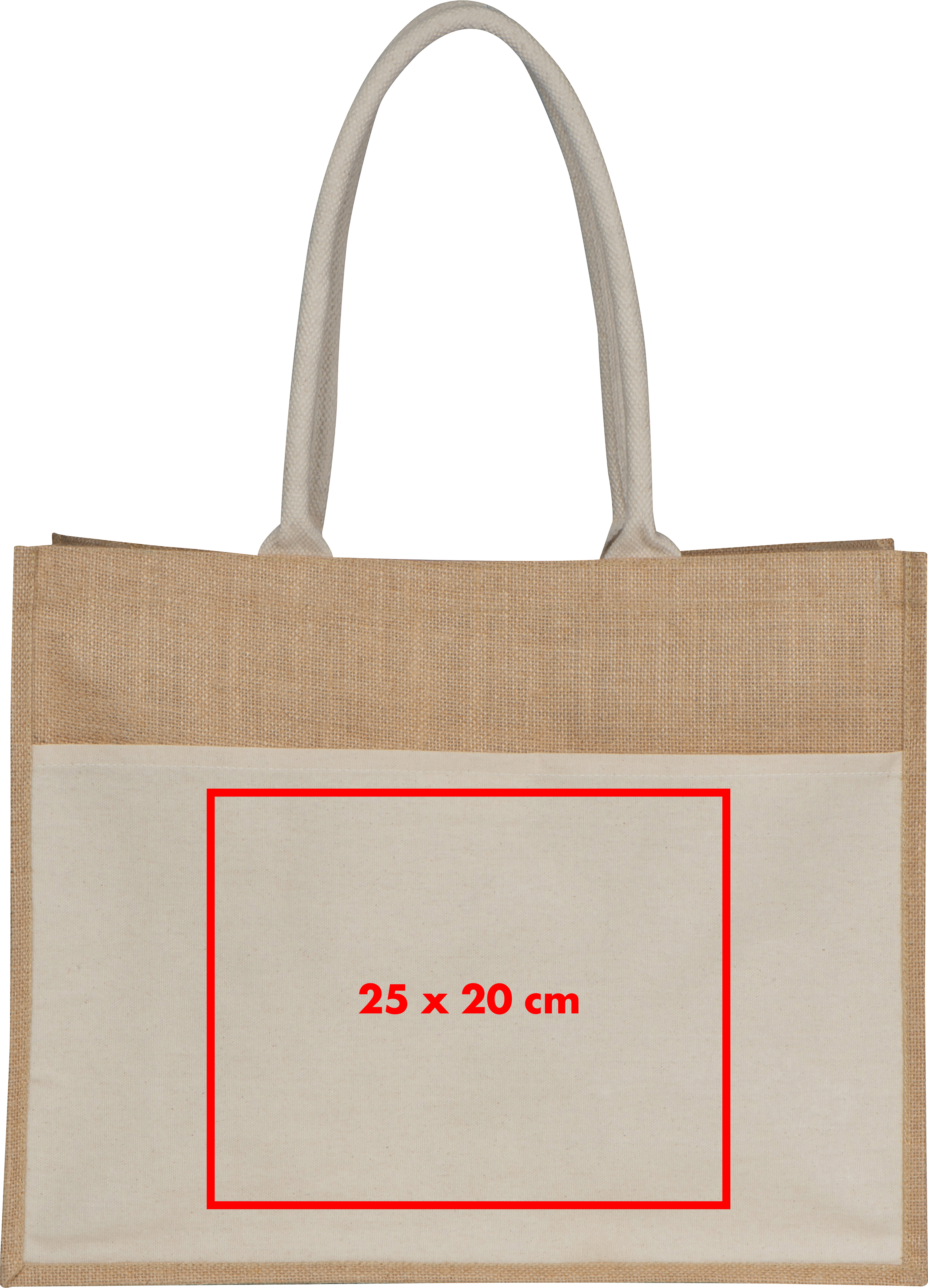 Oeko-Tex® STANDARD 100 zertifizierte Jutetasche mit zwei Tragehenkeln und praktischem Baumwollvorfach mit Klettverschluss.Erfreuen Sie sich an unserer Oeko-Tex® STANDARD 100 zertifizierten Jutetasche – eine praktische und stilvolle Wahl mit durchdachten Funktionen! Diese Tasche ist nicht nur mit zwei Tragehenkeln ausgestattet, sondern verfügt auch über ein Baumwollvorfach mit Klettverschluss, um Ihre Gegenstände sicher zu verstauen. Produkthighlights: Oeko-Tex® STANDARD 100 Zertifizierung: Unsere Jutetasche erfüllt die strengen Anforderungen des Oeko-Tex® STANDARD 100, was bedeutet, dass sie auf schädliche Substanzen geprüft und zertifiziert ist. Robuste Jute mit Baumwollvorfach: Die Jutetasche ist strapazierfähig und langlebig, während das Baumwollvorfach mit Klettverschluss einen sicheren Aufbewahrungsbereich für kleinere Gegenstände bietet. Zwei Tragehenkel: Die beiden Tragehenkel ermöglichen einen bequemen Transport der Tasche über der Schulter oder in der Hand. Praktisches Baumwollvorfach: Das Vorfach mit Klettverschluss ist ideal für den schnellen Zugriff auf kleine Gegenstände wie Schlüssel, Geldbörsen oder Mobiltelefone. Werbeanbringung: Ihr Logo wird auf das Baumwollvorfach gedruckt, um Ihre Marke effektiv zu präsentieren.