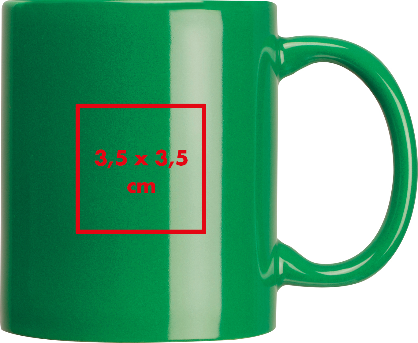 Vollfarbige Kaffeetasse aus glänzender Keramik und 300ml Füllvermögen. Einzeln verpackt im Karton.Unsere vollfarbige Kaffeetasse aus glänzender Keramik mit einem Fassungsvermögen von 300 ml ist der perfekte Begleiter für Ihren Kaffee oder Tee. Hier sind die wichtigsten Merkmale dieser Tasse: Produkthighlights: Hochwertiges Material: Diese Kaffeetasse ist aus glänzender Keramik gefertigt, was nicht nur für ein ansprechendes Erscheinungsbild sorgt, sondern auch für Langlebigkeit und Widerstandsfähigkeit. Füllvermögen von 300 ml: Mit einem großzügigen Fassungsvermögen von 300 ml bietet diese Tasse ausreichend Platz für Ihre Lieblingsgetränke. Einzeln verpackt: Jede Tasse wird einzeln in einem Karton verpackt, was nicht nur die Präsentation verbessert, sondern auch den Schutz während des Transports gewährleistet. Werbeanbringung: Wir bieten die Möglichkeit eines Vollfarbdrucks auf der Tasse. Das bedeutet, dass Ihr Logo, Design oder Ihre Botschaft in brillanten Farben und hoher Qualität auf die Tasse gedruckt wird.