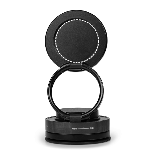 Magnetischer Handyhalter mit Vakuum-Befestigungssystem. Der zentrale Bereich ermöglicht eine bequeme Anpassung der Position Ihres Geräts (360°-Drehung).. Material: PC, ABS und recyceltes TPU. Enthält: zusätzlicher Magnetgriff, quadratischer transparenter Aufkleber für unebene Oberflächen, Inbusschlüssel zur Einstellung und Reinigungstücher für die Oberflächen nach der Nutzung. Lieferung: Geschenkbox aus recyceltem Kraftpapier.