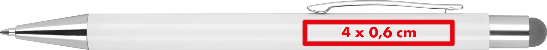 Kugelschreiber aus Aluminium mit rubber finish Oberfläche, Touchfunktion und blau schreibender Großraummine.Unser Aluminium-Kugelschreiber mit rubber finish Oberfläche ist nicht nur ein stilvolles Schreibgerät, sondern auch ein praktisches Werkzeug mit Touchfunktion. Dieser Kugelschreiber verfügt über eine blau schreibende Großraummine und bietet Ihnen ein angenehmes Schreibgefühl. Produkthighlights: Hochwertige Materialien: Der Kugelschreiber ist aus Aluminium gefertigt, was ihm eine edle Optik und Langlebigkeit verleiht. Die gummierte Oberfläche sorgt für einen rutschfesten Griff. Touchfunktion: Mit der integrierten Touchfunktion können Sie bequem auf Touchscreens von Smartphones, Tablets und anderen Geräten navigieren. Großraummine: Die blau schreibende Großraummine ermöglicht ein flüssiges und präzises Schreiben. Werbeanbringung: Wir bieten Ihnen die Möglichkeit, Ihr Logo rechts vom Clip auf dem Kugelschreiber anzubringen, um Ihr Unternehmen oder Ihre Marke effektiv zu präsentieren.