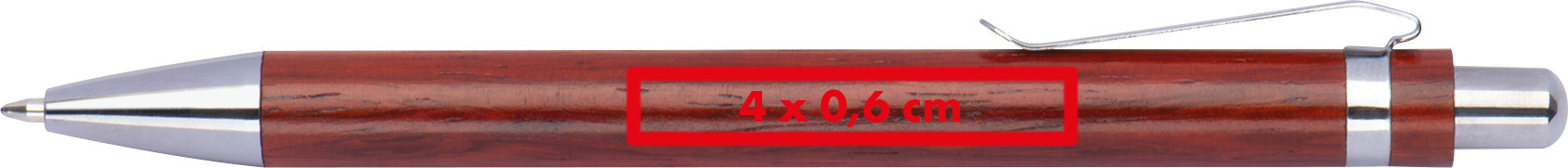 Unser Kugelschreiber aus lackiertem Holz kombiniert natürliche Eleganz mit Schreibkomfort. Mit einer blau schreibenden Mine und stilvollen silbernen Applikationen ist dieser Kugelschreiber nicht nur ein praktisches Schreibgerät, sondern auch ein stilvolles Accessoire. Produkthighlights: Hochwertiges Holz: Der Kugelschreiber ist aus lackiertem Holz gefertigt, was ihm eine warme und natürliche Optik verleiht. Sanftes Schreibgefühl: Die blaue Mine sorgt für ein geschmeidiges und präzises Schreibgefühl, das Ihre Worte lebendig werden lässt. Silberne Applikationen: Die silbernen Details und der Clip verleihen dem Kugelschreiber einen Hauch von Eleganz und Raffinesse. Werbeanbringung: Ihr Logo wird rechts vom Clip auf den Kugelschreiber graviert, was ihm eine persönliche Note verleiht und ihn zu einem hervorragenden Werbegeschenk oder Merchandise-Produkt macht.