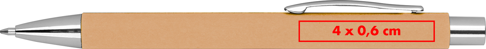 Blauschreibender Kugelschreiber mit Papierschaft und Metallclip.Herzlich willkommen zu unserem Kugelschreiber mit Papierschaft – eine durchdachte Wahl mit einem blauschreibenden Mechanismus und einem Metallclip! Produkthighlights: Papierschaft: Der Schaft des Kugelschreibers besteht aus Papier, was eine ressourcenschonende Alternative darstellt. Metallclip: Der Metallclip verleiht dem Kugelschreiber eine hochwertige Optik und sorgt für eine sichere Befestigung. Blauschreibender Mechanismus: Die blauschreibende Mine ermöglicht ein angenehmes und präzises Schreiberlebnis. Werbeanbringung: Ihr Logo wird auf dem Papierschaft des Kugelschreibers gedruckt, um eine auffällige und personalisierte Präsentation zu gewährleisten.