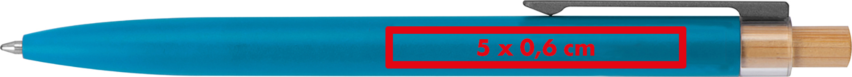 Kugelschreiber aus recyceltem Aluminium mit blauschreibender Mine und Bambusdrücker.Herzlich willkommen zu unserem stilvollen Kugelschreiber aus recyceltem Aluminium mit einem Metallclip, einer blau schreibenden Mine und einem Bambusdrücker – eine durchdachte und moderne Schreiblösung! Produkthighlights: Recyceltes Aluminium: Der Kugelschreiber besteht aus recyceltem Aluminium, das Ressourcen schont und eine bewusste Materialwahl darstellt. Metallclip: Der Metallclip verleiht dem Kugelschreiber eine moderne Optik und sorgt für einen sicheren Halt am Hemd oder in der Tasche. Blau schreibende Mine: Die blau schreibende Mine ermöglicht ein angenehmes und präzises Schreiberlebnis. Bambusdrücker: Der Drücker aus Bambus verleiht dem Schreiber eine natürliche und warme Note. Werbeanbringung: Ihr Logo wird rechts vom Clip auf dem Kugelschreiber graviert, um eine auffällige und personalisierte Präsentation zu gewährleisten.