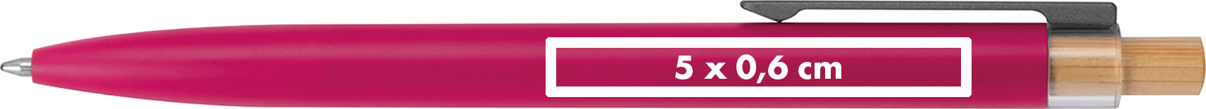 Kugelschreiber aus recyceltem Aluminium mit blauschreibender Mine und Bambusdrücker.Herzlich willkommen zu unserem stilvollen Kugelschreiber aus recyceltem Aluminium mit einem Metallclip, einer blau schreibenden Mine und einem Bambusdrücker – eine durchdachte und moderne Schreiblösung! Produkthighlights: Recyceltes Aluminium: Der Kugelschreiber besteht aus recyceltem Aluminium, das Ressourcen schont und eine bewusste Materialwahl darstellt. Metallclip: Der Metallclip verleiht dem Kugelschreiber eine moderne Optik und sorgt für einen sicheren Halt am Hemd oder in der Tasche. Blau schreibende Mine: Die blau schreibende Mine ermöglicht ein angenehmes und präzises Schreiberlebnis. Bambusdrücker: Der Drücker aus Bambus verleiht dem Schreiber eine natürliche und warme Note. Werbeanbringung: Ihr Logo wird rechts vom Clip auf dem Kugelschreiber graviert, um eine auffällige und personalisierte Präsentation zu gewährleisten.