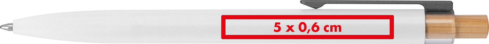 Kugelschreiber aus recyceltem Aluminium mit blauschreibender Mine und Bambusdrücker.Herzlich willkommen zu unserem stilvollen Kugelschreiber aus recyceltem Aluminium mit einem Metallclip, einer blau schreibenden Mine und einem Bambusdrücker – eine durchdachte und moderne Schreiblösung! Produkthighlights: Recyceltes Aluminium: Der Kugelschreiber besteht aus recyceltem Aluminium, das Ressourcen schont und eine bewusste Materialwahl darstellt. Metallclip: Der Metallclip verleiht dem Kugelschreiber eine moderne Optik und sorgt für einen sicheren Halt am Hemd oder in der Tasche. Blau schreibende Mine: Die blau schreibende Mine ermöglicht ein angenehmes und präzises Schreiberlebnis. Bambusdrücker: Der Drücker aus Bambus verleiht dem Schreiber eine natürliche und warme Note. Werbeanbringung: Ihr Logo wird rechts vom Clip auf dem Kugelschreiber graviert, um eine auffällige und personalisierte Präsentation zu gewährleisten.