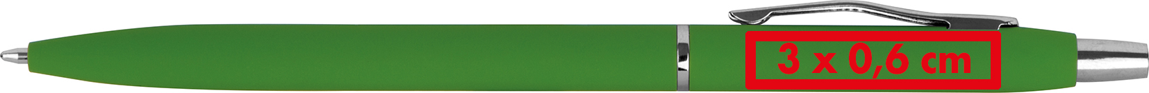 Schlanker, gummierter Metallkugelschreiber mit silbernen Applikationen und blau schreibender Mine.Präsentieren Sie Ihren Kunden einen Kugelschreiber, der Eleganz und Funktionalität perfekt miteinander vereint. Unser schlanker, gummierter Metallkugelschreiber mit silbernen Applikationen und einer blau schreibenden Mine ist ein zeitloses Schreibgerät, das Ihr Unternehmen perfekt repräsentiert. Produkthighlights: Schlankes, elegantes Design: Dieser Kugelschreiber zeichnet sich durch sein schlankes und zeitloses Design aus. Er liegt angenehm in der Hand und vermittelt ein Gefühl von Qualität und Stil. Gummierter Griff: Der gummierierte Griff sorgt für hervorragende Griffigkeit und ein komfortables Schreiberlebnis. Egal, ob Sie lange Notizen machen oder kurze Notizen festhalten, dieser Kugelschreiber ist immer bequem. Silberne Applikationen: Die silbernen Applikationen verleihen dem Kugelschreiber einen Hauch von Raffinesse und Eleganz. Sie setzen Akzente und machen den Stift zu einem Blickfang. Blau schreibende Mine: Unsere hochwertige blau schreibende Mine garantiert ein gestochen scharfes Schriftbild und eine reibungslose Schreiberfahrung. Werbeanbringung: Ihre Werbung wird rechts vom Clip des Kugelschreibers gelasert. Dieser hochpräzise Laserdruck sorgt dafür, dass Ihr Logo dauerhaft und stilvoll auf dem Stift erscheint.