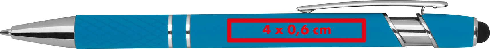 Kugelschreiber aus Aluminium mit silbernen Applikationen, blau schreibender Großraummine, Touchfunktion und gemusterter Griffzone.Unser Aluminium-Kugelschreiber ist ein exklusives Schreibgerät, das nicht nur hervorragende Schreibergebnisse liefert, sondern auch stilvoll und funktional ist. Produkthighlights: Hochwertiges Aluminium: Dieser Kugelschreiber ist aus hochwertigem Aluminium gefertigt, was ihm ein elegantes und modernes Erscheinungsbild verleiht. Blau schreibende Mine: Die blau schreibende Mine sorgt für ein reibungsloses und präzises Schreibgefühl, das in Meetings, im Büro oder unterwegs ideal ist. Touchfunktion: Die integrierte Touchfunktion ermöglicht die bequeme Bedienung von Touchscreens auf Smartphones und Tablets. Gemusterte Griffzone: Die gemusterte Griffzone sorgt für einen rutschfesten Halt und ein angenehmes Schreibgefühl. Silberne Applikationen: Silberne Applikationen verleihen dem Kugelschreiber eine stilvolle Note. Werbeanbringung: Ihr Logo wird rechts neben dem Clip auf den Kugelschreiber graviert, was ihm eine persönliche Note verleiht und ihn zu einem einzigartigen Werbemittel oder Geschenk macht.