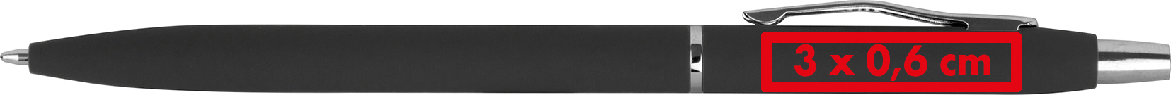 Unser schlanker, gummierter Metallkugelschreiber mit silbernen Applikationen und schwarz schreibender Mine ist eine elegante Schreiboption. Ihre Werbung wird rechts vom Clip auf den Kugelschreiber gelasert, um Ihre Marke stilvoll zu präsentieren. Produkthighlights: Hochwertiges Metall: Der Kugelschreiber besteht aus Metall, was ihm eine edle Optik und Langlebigkeit verleiht. Schwarze Mine: Die schwarze Mine sorgt für ein reibungsloses Schreiberlebnis und gut lesbare Schrift. Silberne Applikationen: Die silbernen Applikationen verleihen dem Kugelschreiber eine zeitlose und elegante Optik. Gummierter Schaft: Der gummierter Schaft trägt zum Schreibkomfort bei und sorgt für einen angenehmen Griff. Werbeanbringung: Ihre Werbung wird rechts vom Clip auf den Kugelschreiber gelasert, um sicherzustellen, dass Ihre Marke dauerhaft und stilvoll präsentiert wird.