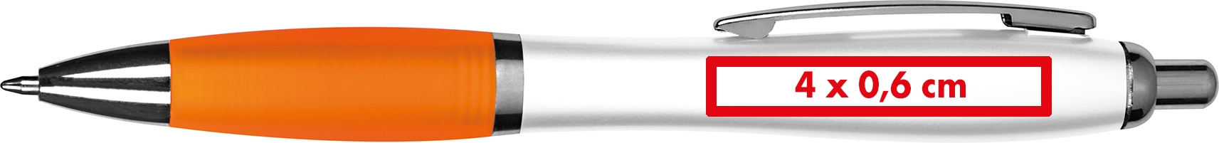 Kugelschreiber mit weißem Schaft, Metallclip, blau schreibender Großraummine und farbiger Gummimanschette.Unser Kugelschreiber mit weißem Schaft, Metallclip, blau schreibender Großraummine und farbiger Gummimanschette ist ein stilvolles und vielseitiges Schreibgerät. Ihre Werbung wird rechts vom Clip auf den Kugelschreiber gedruckt, um Ihre Marke auffällig zu präsentieren. Produkthighlights: Weißer Schaft: Der weiße Schaft verleiht dem Kugelschreiber eine saubere und zeitlose Optik. Blauschreibende Großraummine: Die blaue Großraummine sorgt für ein geschmeidiges Schreiberlebnis und klare, gut lesbare Schrift. Metallclip: Der Metallclip verleiht dem Kugelschreiber eine hochwertige und zeitlose Optik und sorgt für eine sichere Befestigung. Farbige Gummimanschette: Die farbige Gummimanschette bietet eine Möglichkeit zur Anpassung an Ihre Markenfarben und trägt zum Schreibkomfort bei. Werbeanbringung: Ihre Werbung wird rechts vom Clip auf den Kugelschreiber gedruckt, um sicherzustellen, dass Ihre Marke stilvoll und auffällig präsentiert wird.