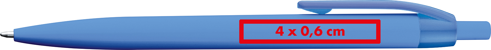 Druckkugelschreiber mit blau schreibender Mine in, trendigen Farben.Unser Druckkugelschreiber in leuchtenden, trendigen Farben ist nicht nur ein praktisches Schreibgerät, sondern auch eine großartige Möglichkeit, Ihr Logo oder Ihre Marke zu präsentieren. Mit einer blau schreibenden Mine und einem modernen Design ist dieser Kugelschreiber ideal für den täglichen Gebrauch im Büro, zu Hause oder unterwegs. Produkthighlights: Leuchtende Farben: Die trendigen Farben verleihen dem Kugelschreiber ein modernes und ansprechendes Erscheinungsbild. Blau schreibende Mine: Die blau schreibende Mine bietet ein sauberes und gut lesbares Schriftbild. Langlebig und zuverlässig: Der Druckkugelschreiber ist langlebig und zuverlässig, wodurch er sich ideal für den täglichen Gebrauch eignet. Werbeanbringung: Ihr Logo wird neben den Clip gedruckt, um den Kugelschreiber zu personalisieren und als Werbemittel oder Geschenk zu nutzen.