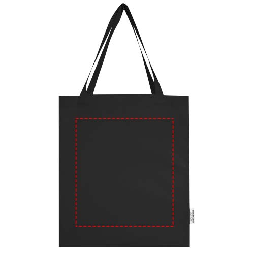 Madras 140 g/m² Baumwoll Tragetasche mit Seitenfalten aus GRS recycelter Baumwolle 12L, schwarz