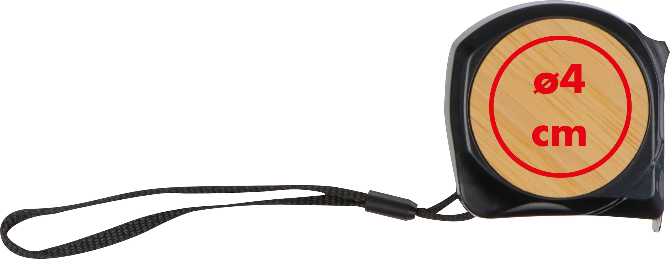 Stahlmaßband mit 5m Lauflänge, robustem Kunststoffgehäuse und Bambus Mittelteil, Dauerstopper und Handschlaufe.Unser Stahlmaßband mit Bambusakzenten ist ein nützliches und stilvolles Werkzeug für Handwerker, Heimwerker und alle, die genaue Messungen benötigen. Mit seinem hochwertigen Stahlband und dem natürlichen Bambusgehäuse ist es ein ideales Werbegeschenk oder Accessoire für diejenigen, die Präzision und Stil schätzen. Produkthighlights: Präzise Messungen: Das Stahlmaßband bietet eine Messlänge von 5 Metern, was es perfekt für eine Vielzahl von Anwendungen macht. Haltbares Gehäuse: Das robuste Kunststoffgehäuse mit einem Bambus-Mittelteil schützt das Band und sorgt für Langlebigkeit. Dauerstopper und Handschlaufe: Der Dauerstopper ermöglicht es, Messungen ohne zusätzliche Hilfe bequem zu sichern. Die Handschlaufe sorgt für einfache Handhabung und Aufbewahrung. Werbeanbringung: Wir bieten die Möglichkeit, Ihr Logo auf den Bambusanteil des Gehäuses zu drucken, um dieses Maßband zu einem individuellen Werbemittel zu machen.