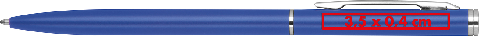 Eleganter Drehkugelschreiber aus Metall in schlanker Form mit verchromtem Clip und blau schreibender Mine.Ein eleganter Drehkugelschreiber aus Metall in schlanker Form mit verchromtem Clip und blau schreibender Mine ist ein stilvolles und praktisches Schreibgerät. Produkthighlights: Hochwertiges Metall: Der Kugelschreiber besteht aus hochwertigem Metall, was Eleganz und Haltbarkeit verleiht. Schlanke Form: Die schlanke Form des Kugelschreibers liegt bequem in der Hand und ermöglicht ein komfortables Schreiberlebnis. Verchromter Clip: Der verchromte Clip verleiht dem Kugelschreiber eine glänzende und edle Note. Blau schreibende Mine: Die blaue Schreibmine sorgt für ein reibungsloses und professionelles Schreiberlebnis. Werbeanbringung: Ihre Werbung wird mit Präzision rechts vom Clip gelasert, was einen dauerhaften Eindruck hinterlässt.