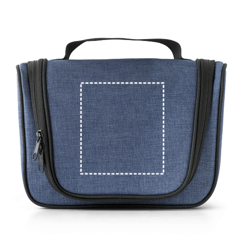 Kulturbeutel aus 600D. Das Hauptfach hat einen Doppelreißverschluss und Innenfutter aus 210D, mehrere Innentaschen und einen Haken an der Oberseite zum Aufhängen