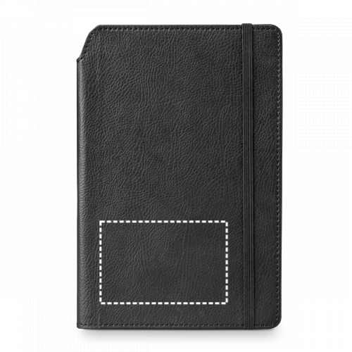 Notizbuch A5 mit Hardcover aus PU. 192 linierten Seiten (70 g/m²), aus FSC™-zertifiziertem Material und anderen kontrollierten Materialien hergestellt, einem Kugelschreiberhalter (Kugelschreiber nicht enthalten) und einem Gummiband. Geliefert in einem Non-Woven Beutel
