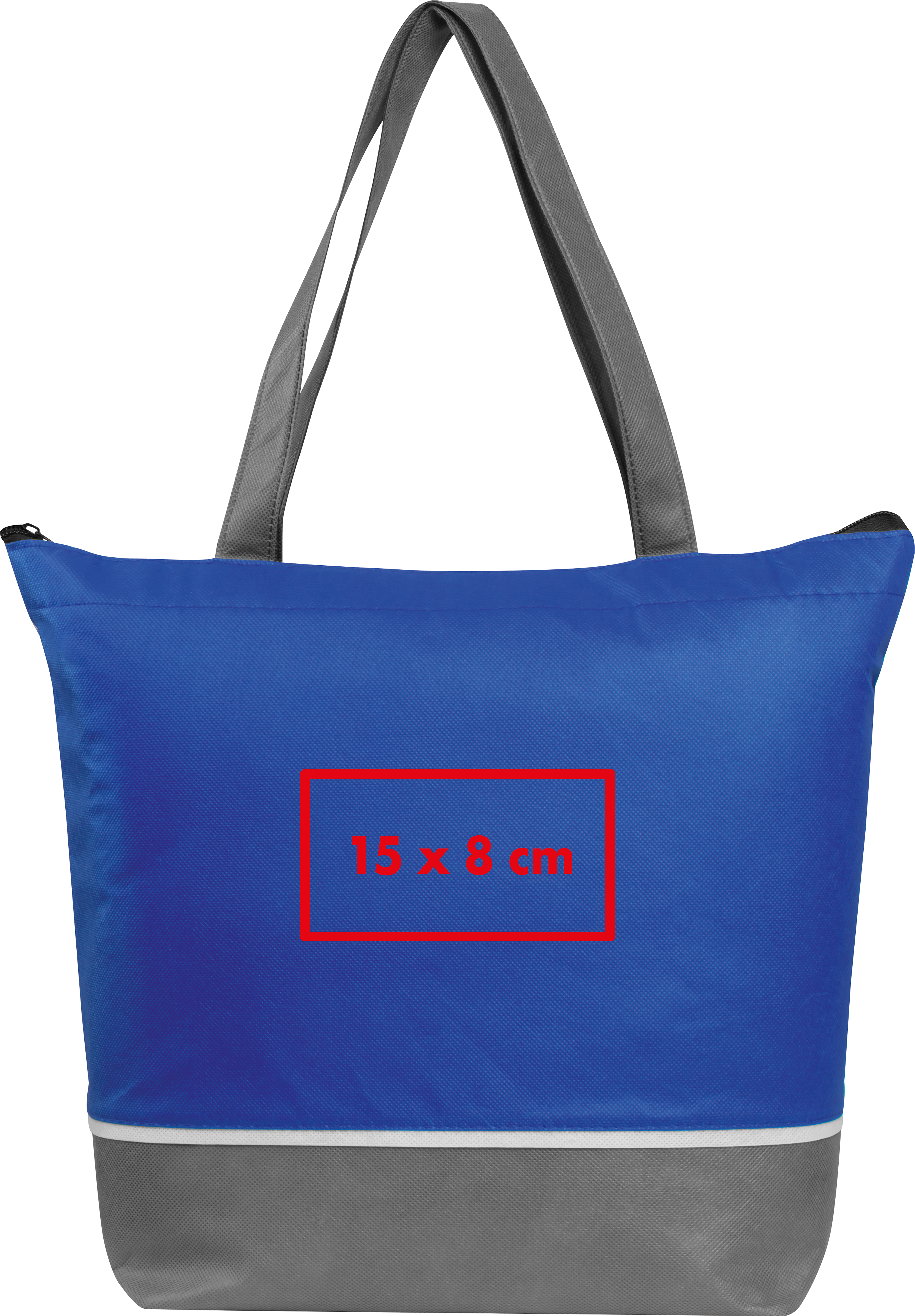 Non Woven Kühltasche mit einem Füllvermögen von 10 Litern, zwei Tragehenkeln, Isolierung sowie einem grau abgesetzten unteren Bereich.Unsere Non-Woven Kühltasche ist vielseitig einsetzbar und die perfekte Lösung für Picknicks, Einkäufe oder den Transport von Getränken. Mit ihrem modernen Design und funktionalen Merkmalen wird sie schnell zum unverzichtbaren Begleiter. Produkthighlights: Effektive Isolierung: Die Kühltasche hält Lebensmittel und Getränke zuverlässig kühl, ideal für unterwegs oder für sommerliche Ausflüge. Bequeme Tragehenkel: Zwei stabile Henkel sorgen für Komfort beim Tragen, egal ob in der Hand oder über der Schulter. Modernes Design: Der grau abgesetzte untere Bereich verleiht der Tasche eine elegante Optik und erhöht ihre Strapazierfähigkeit. Langlebiges Material: Hergestellt aus strapazierfähigem Non-Woven-Material, bietet die Tasche eine robuste Konstruktion für den täglichen Einsatz. Werbeanbringung: Ihr Logo wird prominent auf der Vorderseite der Kühltasche gedruckt, wodurch sie zu einem effektiven Werbeträger wird.