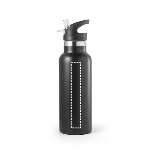Flasche aus Edelstahl (570 mL), vakuumisoliert mit Doppelwand. Der Deckel enthält einen PP-Trinker mit Strohhalm. Geliefert in einer Geschenkschachtel aus Kraftpapier