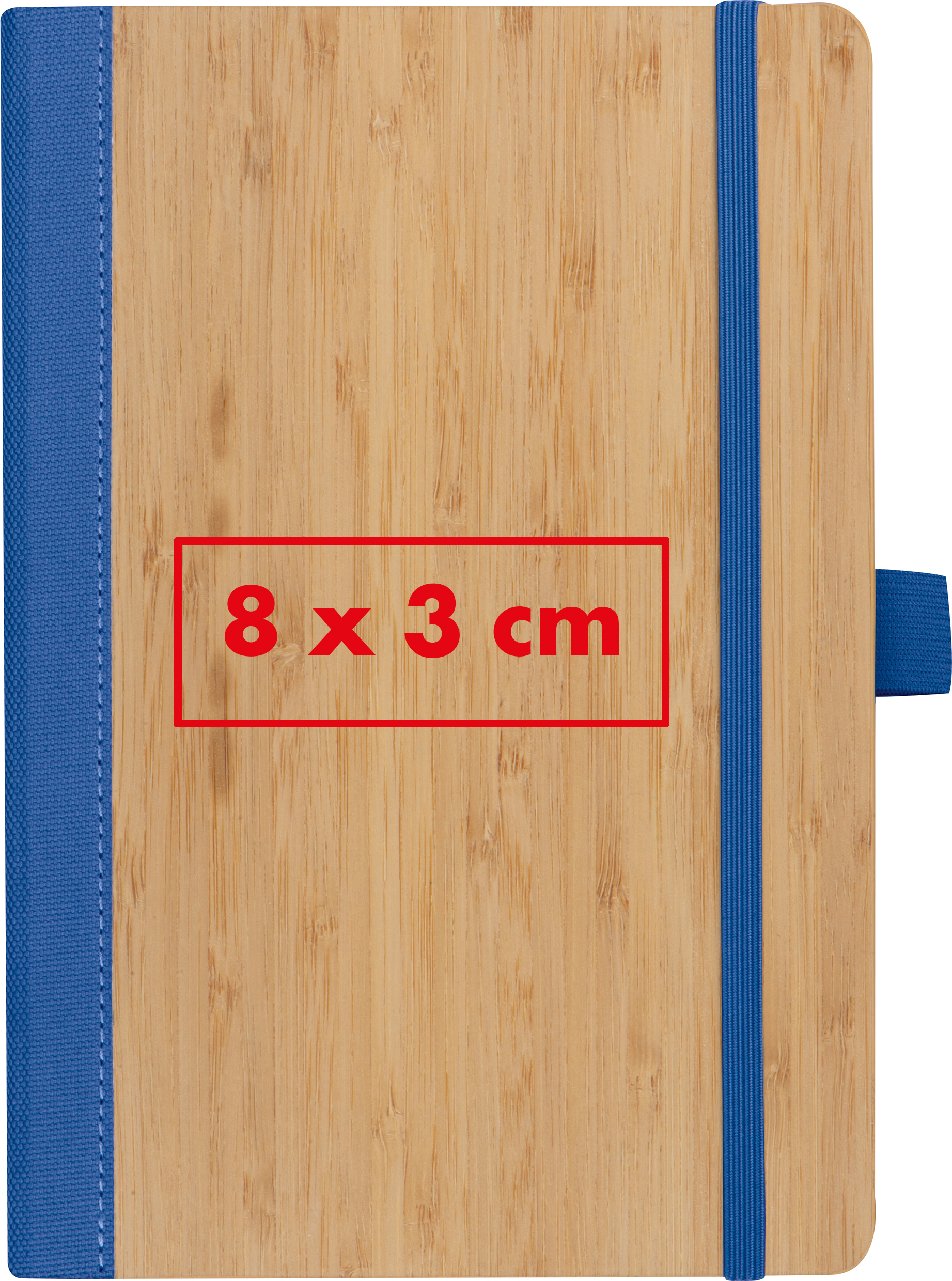 Notizbuch mit Cover aus Bambus und recyceltem Polyester auf der Rückseite. Das Notizbuch verfügt über 192 linierte Seiten, einem Lesebändchen und einer Kugelschreiberschlaufe.Unser Notizbuch mit einem Cover aus Bambus und einer Rückseite aus recyceltem Polyester kombiniert Stil und Funktionalität. Mit Ihrem gravierten Logo auf der Bambusoberfläche wird es zu einem hochwertigen und individuellen Werbegeschenk. Produkthighlights: Bambus-Cover: Verleiht dem Notizbuch eine natürliche und elegante Optik, ideal für den professionellen oder privaten Gebrauch. Rückseite aus recyceltem Polyester: Robuste Verarbeitung für langlebige Nutzung. 192 Seiten: Recyclingpapier bietet ausreichend Platz für Ihre Notizen, Gedanken oder Skizzen. Lesebändchen: Praktisches Markieren und Wiederfinden wichtiger Einträge. Kugelschreiberschlaufe: Immer einen Stift griffbereit dank der integrierten Halterung. Werbeanbringung: Ihr Logo wird präzise auf die Bambusoberfläche graviert, um Ihre Marke elegant zu präsentieren.