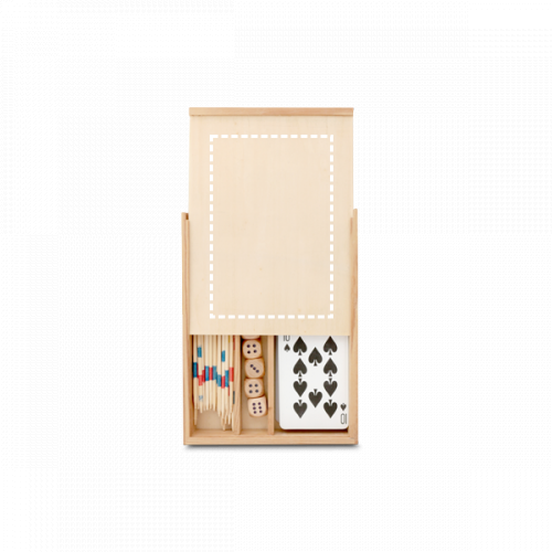Spielset 4 in 1 für die ganze Familie. Dieses Spiel beinhaltet: Domino, Mikado, Karten- und Würfelspiel. Geliefert in einer Holzschachtel. Da das Produkt aus natürlichen Materialien hergestellt wird, können Farbe des Produkts sowie das Druckergebnis von Produkt zu Produkt unterschiedlich seinIhr Promoidee-Kundenbetreuer ist Ihnen gerne behilflich den Artikel PLAYTIME Spielset, durch Anbringung Ihres Firmenlogos, zu Ihrem ganz persönlichen Werbeartikel zu machen.