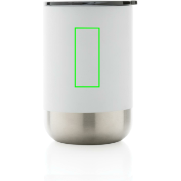 RCS recycelter Stainless Steel BecherDieser schöne Becher aus recyceltem Stainless Steel mit Vakuumisolierung hält Getränke bis zu 3 Stunden warm oder bis zu 6 Stunden. Seine trendige Ausführung mit Stainless Steel akzentuiertem Boden macht ihn zu einem echten Hingucker. Der Deckel mit Aufschiebefunktion dient als Schwappschutz, ist aber nicht auslaufsicher. Hergestellt aus RCS (Recycled Claim Standard)-zertifiziert recycelten Materialien. Die RCS-Zertifizierung gewährleistet eine vollständig zertifizierte Lieferkette der recycelten Materialien. Gesamter Recyclinganteil: 76% basierend auf dem Gesamtgewicht des Artikels. BPA-frei. Fassungsvermögen 360ml.
