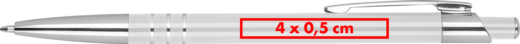 Kugelschreiber in schlanker Form aus recyceltem Aluminium, mit blau schreibender Mine und drei Zierringen.Unser Kugelschreiber aus Aluminium überzeugt durch seine schlanke Form und elegantes Design mit drei Zierringen. Die blau schreibende Mine sorgt für ein angenehmes Schreibgefühl, während der robuste Aluminiumkörper langlebige Qualität bietet. Die präzise Lasergravur Ihrer Werbung rechts vom Clip macht den Kugelschreiber zu einem stilvollen Werbeträger für den täglichen Gebrauch. Produkthighlights: Hochwertiges Aluminium: Strapazierfähig und mit moderner Optik. Schlankes Design: Liegt angenehm in der Hand und ist leicht zu transportieren. Blau schreibende Mine: Für ein flüssiges und sauberes Schriftbild. Elegante Zierringe: Verleihen dem Kugelschreiber ein edles Erscheinungsbild. Werbeanbringung: Ihre Werbung wird rechts vom Clip gelasert, für eine dezente und professionelle Präsentation Ihrer Marke.