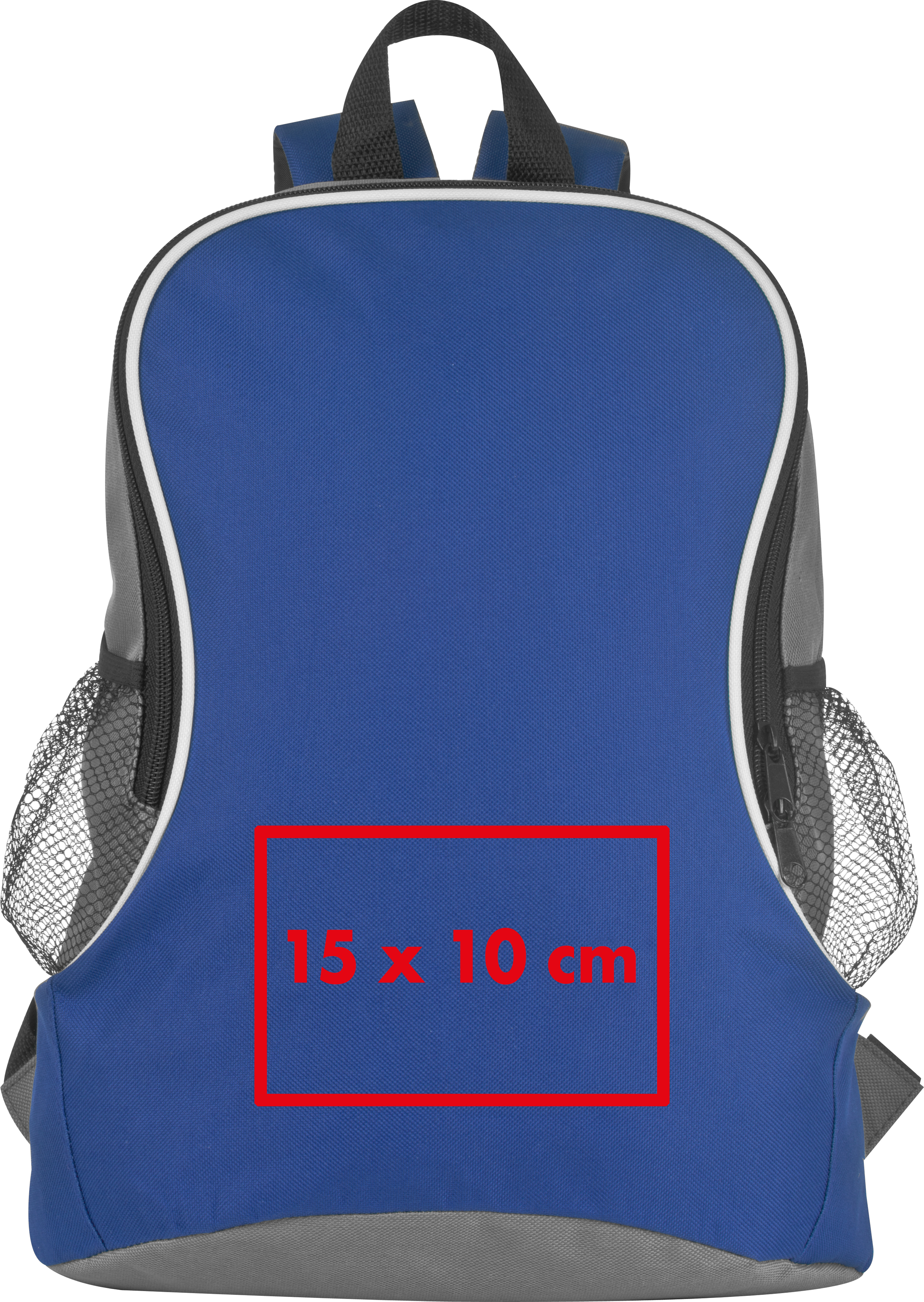 Der Rucksack aus Polyester, mit einem Füllvermögen von 17 Litern, ist mit zwei praktischen Netzfächern an der Außenseite und gepolsterten Schultergurten ausgestattet.Unser Rucksack aus Polyester ist nicht nur funktional, sondern auch ein stilvoller Begleiter für Ihre Outdoor-Abenteuer. Bestellen Sie noch heute und bieten Sie Ihren Kunden eine hochwertige und personalisierte Lösung, während Sie gleichzeitig Ihre Marke in den Mittelpunkt stellen. Produkthighlights: Praktisches Design: Dieser Rucksack verfügt über zwei praktische Netzfächer an der Außenseite, um Ihre Gegenstände leicht zugänglich zu machen. Bequemer Tragekomfort: Die gepolsterten Schultergurte sorgen für ein angenehmes Trageerlebnis, selbst bei längeren Ausflügen. Hochwertiges Material: Der Rucksack besteht aus strapazierfähigem Polyester, das den Anforderungen von Outdoor-Aktivitäten gerecht wird. Großzügiges Fassungsvermögen: Mit ausreichend Stauraum ist dieser Rucksack perfekt für Reisen, Wandern oder den täglichen Gebrauch geeignet. Individuelle Markenpräsenz: Ihr Logo wird auf die farbige Front des Rucksacks gedruckt, um Ihre Marke auffällig zu präsentieren.