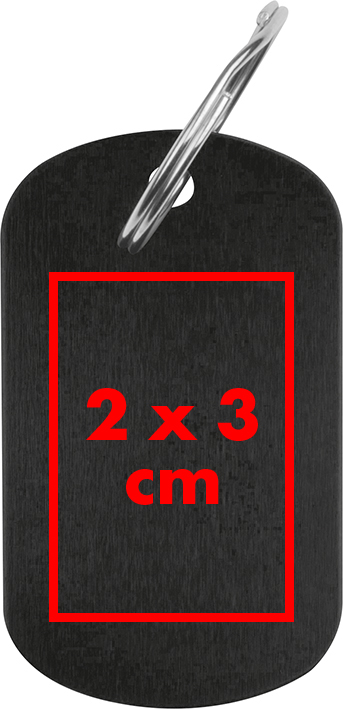 Stilvoller Schlüsselanhänger aus recyceltem Aluminium im modischen Design einer Erkennungsmarke.