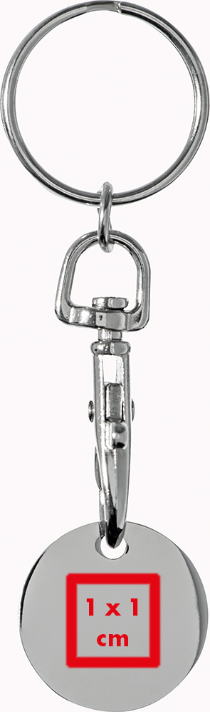 Schlüsselanhänger mit einem durch einen Karabinerhaken abnehmbaren Einkaufschip.Unser vielseitiger Schlüsselanhänger mit abnehmbarem Einkaufschip bietet nicht nur praktische Funktionen, sondern auch eine individuelle Note für Ihre Werbung. Produkthighlights: Praktischer Einkaufschip: Der Schlüsselanhänger verfügt über einen abnehmbaren Einkaufschip, der ideal ist, um Einkaufswagen freizuschalten, ohne Münzen zu benötigen. Dies ist nicht nur praktisch, sondern spart auch Zeit und Mühe. Robustes Design: Hergestellt aus hochwertigem Material, ist dieser Schlüsselanhänger robust und langlebig, sodass er lange verwendet werden kann. Karabinerhaken: Der Schlüsselanhänger ist mit einem praktischen Karabinerhaken ausgestattet, der es ermöglicht, ihn an Ihrem Schlüsselbund, Ihrer Tasche oder Ihrem Gürtel zu befestigen, sodass Sie ihn immer griffbereit haben. Vielseitig einsetzbar: Neben seiner Hauptfunktion als Einkaufschip kann dieser Schlüsselanhänger auch als Anhänger für Schlüssel oder andere Gegenstände dienen. Werbeanbringung: Wir bieten die Möglichkeit, Ihr Logo auf die silberne Seite des Einkaufschips zu lasern. Dadurch wird dieser Schlüsselanhänger zu einem personalisierten Werbemittel, das Ihre Marke effektiv präsentiert.