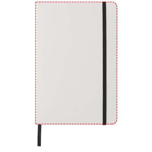 Spectrum weißes A5 Notizbuch mit farbigem Gummiband als Werbeartikel oder Werbemittel