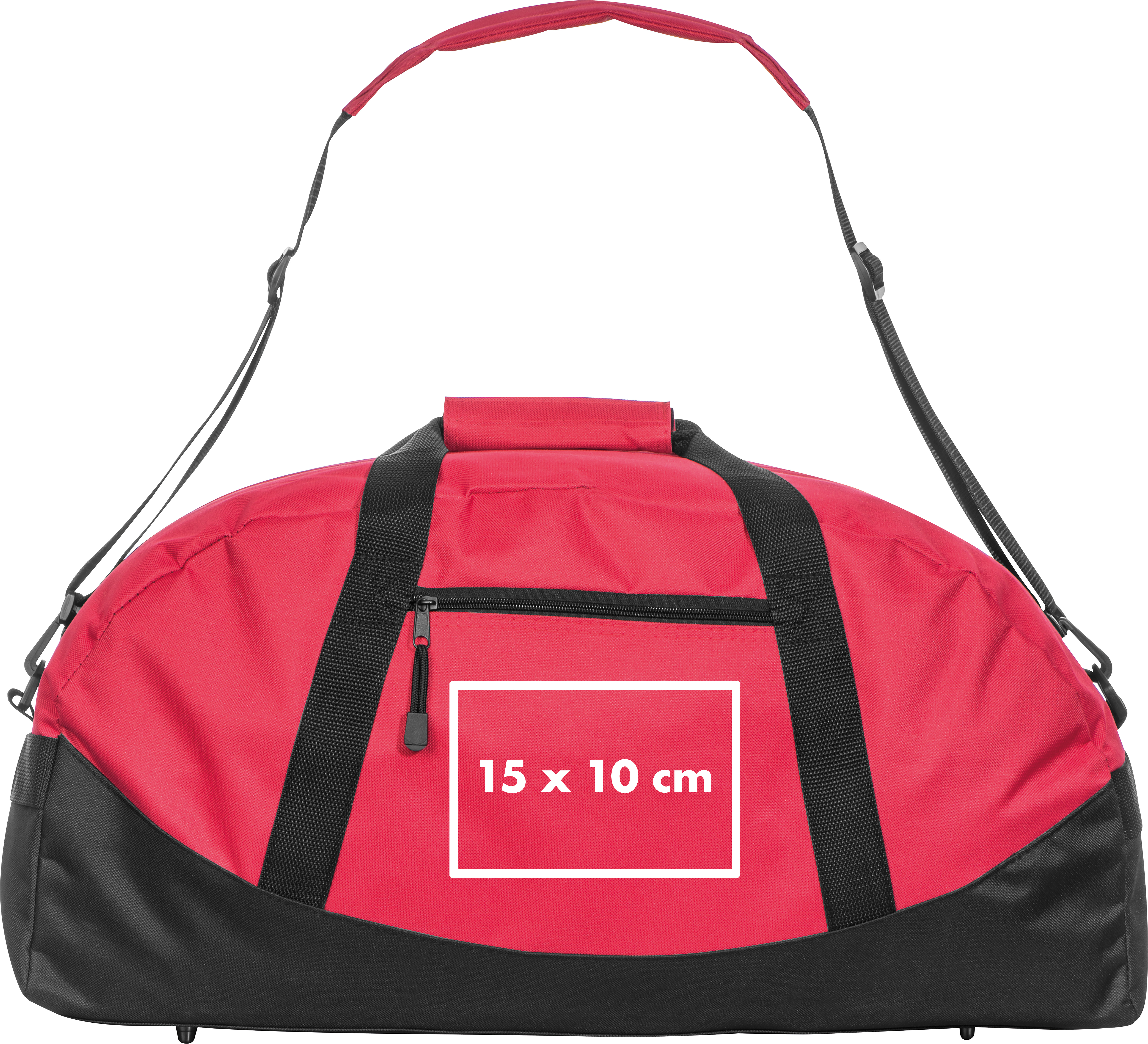 Geräumige Sport- oder Reisetasche aus 600D Polyester mit weich gepolstertem Schultergurt, Vorfach mit Reißverschluss und einer Füllmenge von 54 Litern.Diese geräumige Sport- oder Reisetasche aus 600D Polyester vereint Funktionalität und Stil perfekt. Mit ausreichend Platz, einem bequemen Tragesystem und der Möglichkeit zur Individualisierung ist sie die beste Wahl für Ihr Unternehmen oder Ihre persönlichen Bedürfnisse. Egal, wohin Ihre Reisen Sie führen, bringen Sie Ihre Marke mit dieser hochwertigen Tasche überallhin. Produkthighlights: Geräumiges Design: Mit großzügigen Abmessungen bietet diese Tasche viel Platz für Kleidung, Schuhe, Ausrüstung und mehr. Sie ist der ideale Begleiter für Sport, Reisen und den täglichen Gebrauch. Tragekomfort: Der weich gepolsterte Schultergurt sorgt für einen angenehmen Tragekomfort, selbst wenn die Tasche voll beladen ist. So können Sie Ihre Sachen mühelos transportieren. Organisiertes Vorfach: Das Vorfach mit Reißverschluss ermöglicht es Ihnen, wichtige Gegenstände sicher und organisiert aufzubewahren. Von Schlüsseln bis hin zu Ihrem Smartphone – hier finden all Ihre Essentials Platz. Werbeanbringung: Wir drucken Ihr Logo oder Design zentriert auf die Vortasche zwischen den schwarzen Streifen, um sicherzustellen, dass Ihre Marke überall hervorsticht.